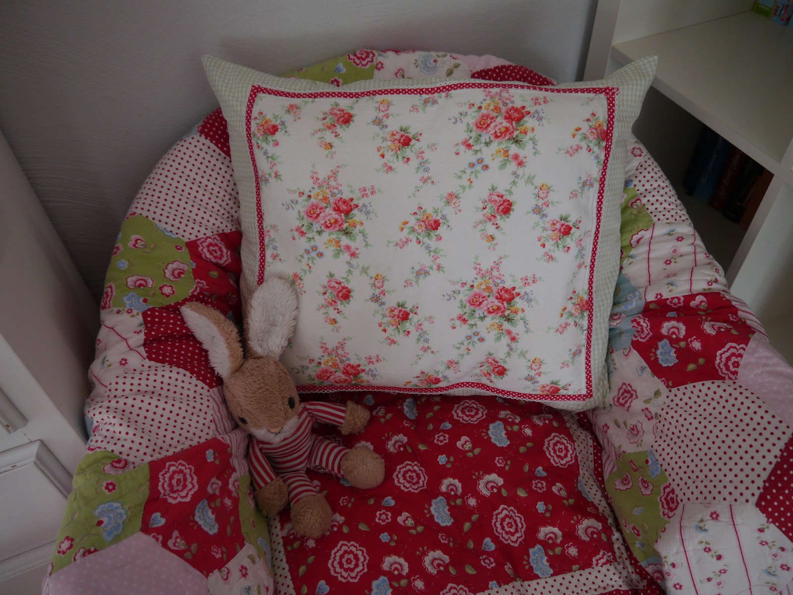Deine neuen selbstgenähten Kissen sind superromantisch hübsch und der kleine Hase sooo süß.